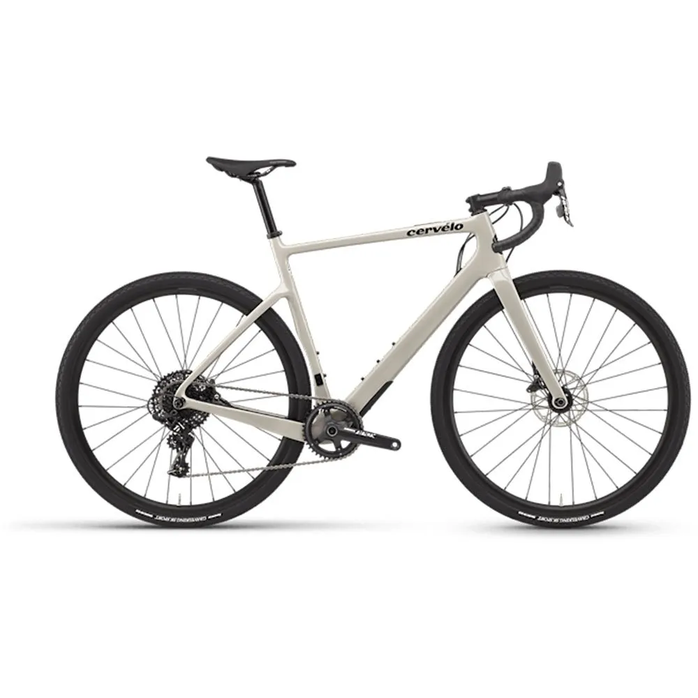 La fourche Cervélo Áspero-5 tout carbone, conique, avec chasse réglable, permet d’adapter le comportement du vélo selon le terrain et le style de pilotage. La transmission SRAM XPLR eTap AXS 12 vitesses assure des changements de vitesse électroniques fiables et rapides, optimisés pour le gravel moderne. L’équipement est complété par une selle Prologo Dimension NDR T4.0 ou Selle Italia Novus Boost Evo Superflow Manganèse, alliant confort et performance.